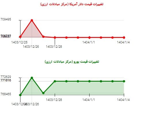 در بررسی قیمت ارزها مربوط به مرکز مبادلات ارزی ایران در دو تاریخ مشخص، 25 اسفند 1403 و 4 فروردین 1404، تغییرات قابل توجهی در قیمتها مشاهده میشود. قیمت یورو از 76,846 تومان به 77,181 تومان افزایش یافته است که بیانگر رشد 0.43 درصدی این ارز در بازه زمانی مذکور میباشد. در مقابل، دلار آمریکا با کاهش جزیی 0.02 درصدی، نوسانات کمتری را نسبت به یورو تجربه کرده است. این تغییرات قیمتی در حالی رخ میدهد که بازار ارز تحت تأثیر عوامل مختلف اقتصادی و سیاسی قرار دارد و میتواند بر روند معاملات و تصمیمگیریهای مالی مؤثر باشد.