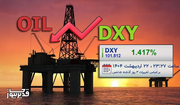 براین اساس میتوان گفت دلار آمریکا قویتر شده است و این باعث میگردد که نفت برای خریداران گرانتر گردد و میزان تقاضا برای خرید نفت کمتر گردد که این موضوع قیمت نفت را کمتر خواهد کرد. بنابراین میتوان انتظار داشت که یک رابطه معکوس بین ارزش دلار آمریکا و قیمت جهانی نفت وجود دارد. با این تحلیل به نظر میرسد که افزایش شاخص DXY باعث کاهش تقاضا برای نفت در بازار های جهانی خواهد شد و در نهایت قیمت جهانی نفت تحت تاثیر این تقاضا، کاهش پیدا خواهد کرد.