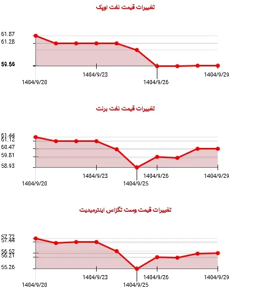 | نفت اوپک | 61.87 | 59.56 | 3.88 | ↓ |