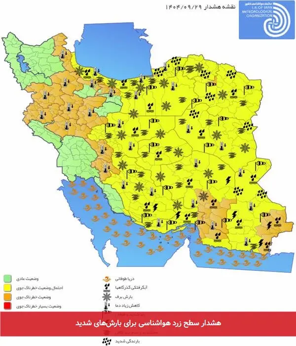 سازمان هواشناسی کشور بهتازگی هشدار سطح زرد شماره 85 را برای روزهای شنبه و یکشنبه، مورخ 29 و 30 آذر 1404 صادر کرده است. این هشدار به دلیل فعالیت سامانههای بارشی در برخی از مناطق کشور منتشر شده است.