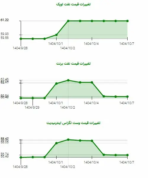 در بررسیهای انجام شده بر اساس اطلاعات سایتهای Oil Price و Business Insider، تغییرات قیمت نفت در تاریخهای 1404/9/28 و 1404/10/7 نشان دهنده حرکات مثبت در بازار نفت است. در این فاصله زمانی، قیمت نفت اوپک از 60 دلار به 61 دلار افزایش یافته است که نشان دهنده یک رشد 2.71 درصدی است. این افزایش قیمتی در میان عوامل مختلف اقتصادی و سیاسی رخ داده و میتواند نشانهای از بهبود شرایط بازار نفت باشد.افزایش قیمت نفت در این بازه زمانی